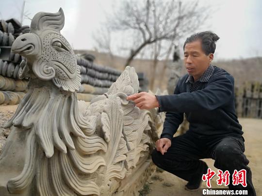 55岁的刘泉是甘肃平凉脊兽制作的传承人,家中祖辈4代人都从事脊兽制作,“手手相传”已经有200余年的历史。 魏建军 摄