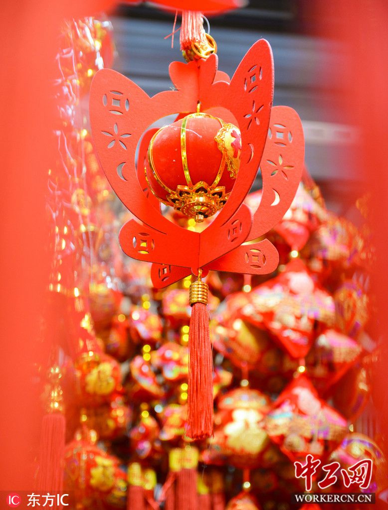 2018年12月25日,江苏省南京市夫子庙大市场一家店铺新上架的小灯笼。(图片来源:东方IC)