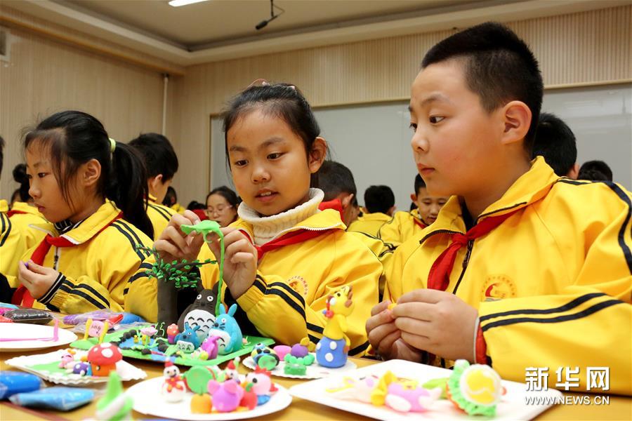 12月27日,山东省枣庄市光明路小学的学生在捏制面塑作品。 当日,山东省枣庄市光明路小学开展“小手捏面塑迎新年”活动,学生们在民间艺人的指导下亲手创作面塑作品,迎接新年的到来。 新华社发(孙中喆 摄)