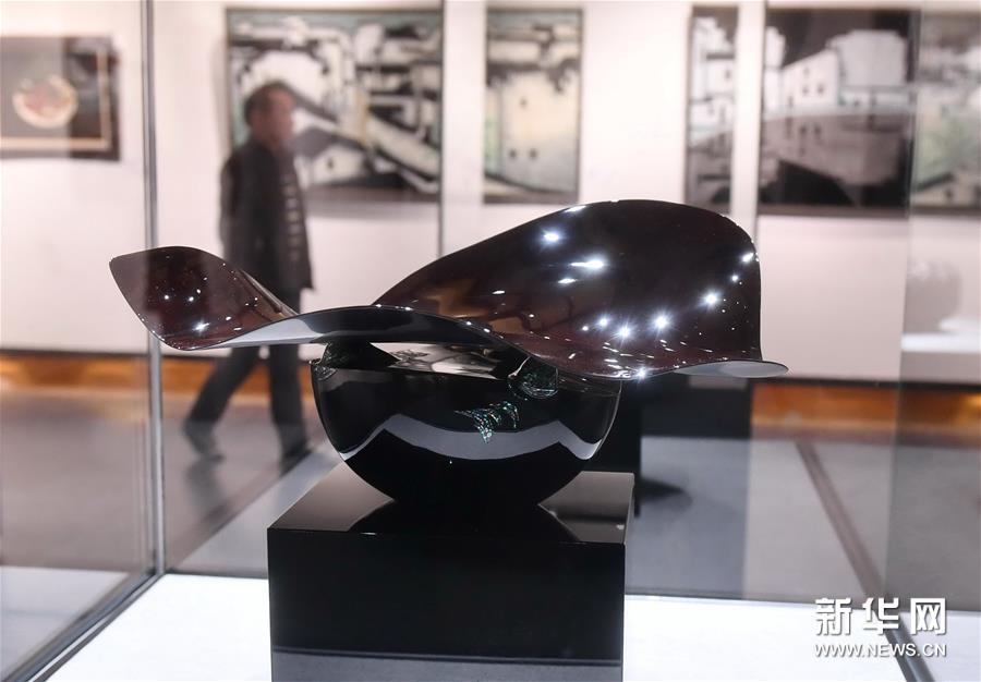 2018福州国际漆艺双年展上展出的作品“叶子的记忆”(12月27日摄)。 当日,2018福州国际漆艺双年展在福州朱紫坊历史文化街区开幕,共展出180多名艺术家的近300件作品。 新华社记者 林善传 摄
