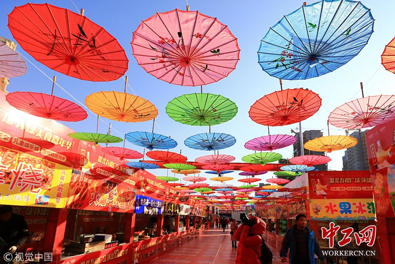 安徽淮北:古风油纸伞展出 五彩斑斓衬托新年氛围浓