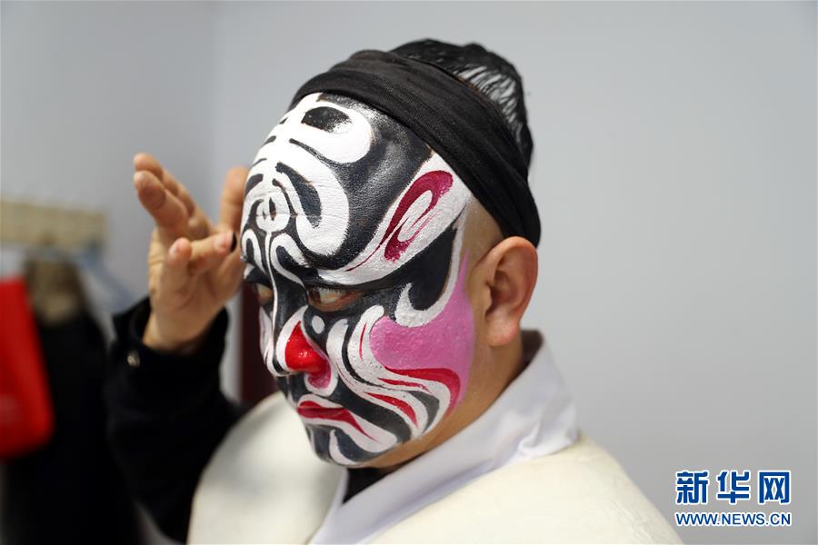 12月28日,在井陉县晋剧团排练大厅,一名演员准备参加带妆彩排。