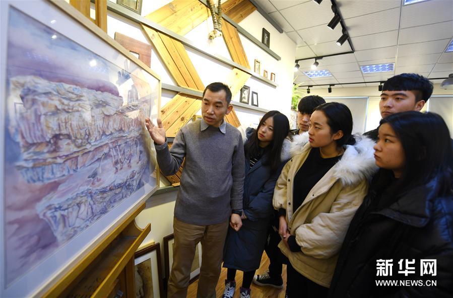 12月28日,河北工业职业技术学院烙画老师张朋军(左一)在课堂上给学生们讲解烙画技巧。 近年来,河北工业职业技术学院实施“非遗文化进校园”工程,把内画、烙画等富有特色的民间非遗项目引入教学中,让学生们体验传统技艺,感受非遗魅力。新华社记者 薛东梅摄