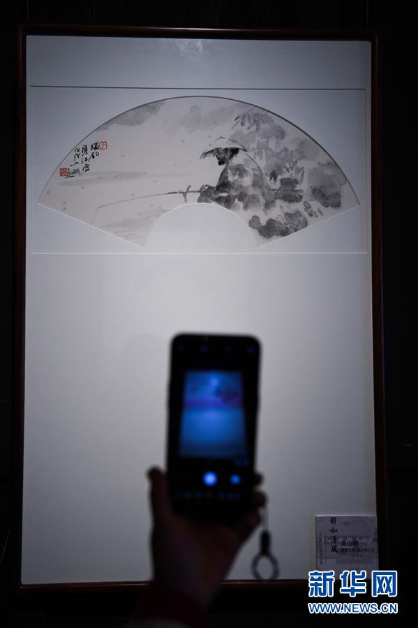 12月29日,观众用手机拍摄扇面艺术展上展示的扇面。 当日,“中国竹扇之乡”——浙江省安吉县鄣吴镇举办传统文化迎新年活动。举办包括扇文化博览会、扇面艺术展、制扇工艺展示及金石、拓印文化展示等活动,弘扬中华优秀传统文化。 自上世纪七十年代以来,鄣吴镇开始发展制扇产业,现在该镇有各类制扇企业80余家,制扇行业从业人员2000多人,年产值达2亿多元。 新华社记者 徐昱摄