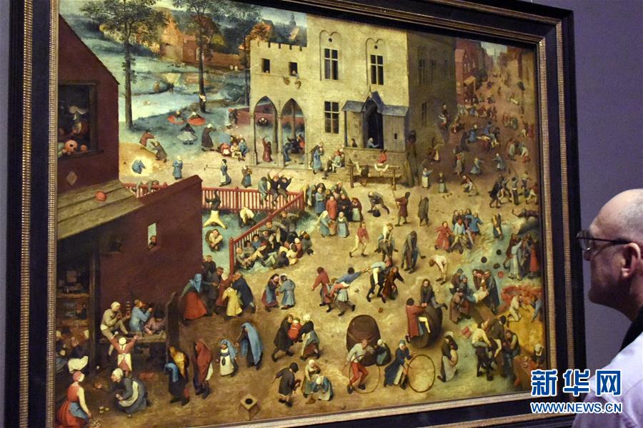 12月29日,在奥地利维也纳艺术史博物馆,一名男子观看老彼得·勃鲁盖尔的画作《儿童游戏》。