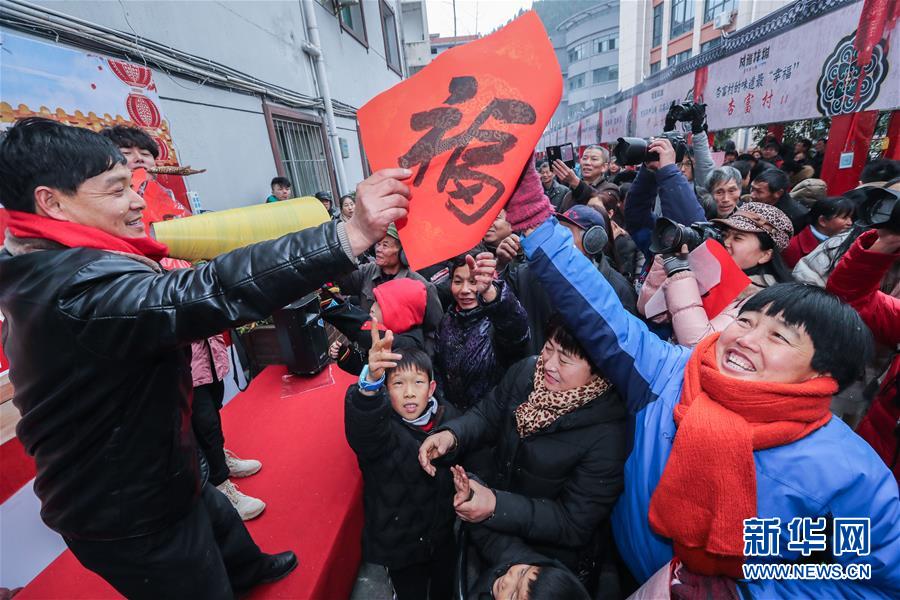 12月30日,村民在书画文化节现场领取新年福字。 新华社记者 徐昱 摄