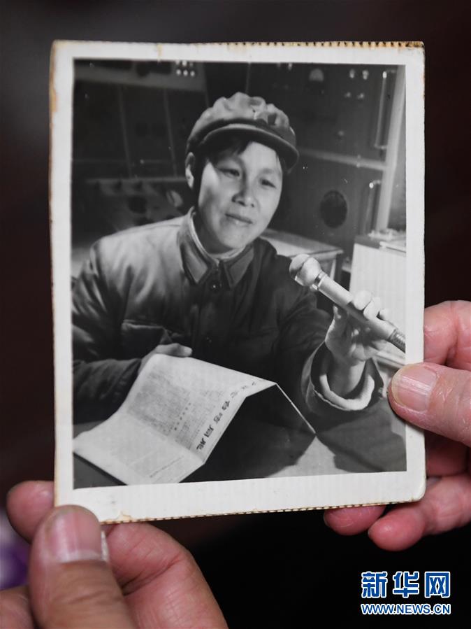 原“福建前线广播电台”广播员陈菲菲当年向金门播音的老照片。 新华社记者 姜克红 摄