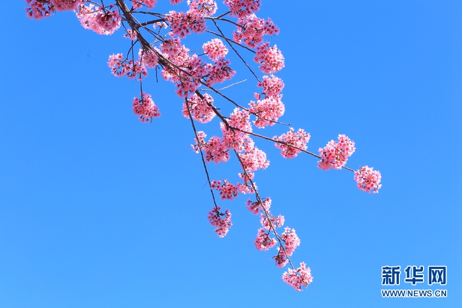 粉色的冬樱花,在蓝天的映衬下显得格外美丽。(新华网 潘越 摄)