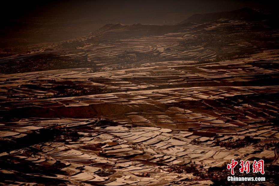 甘肃渭水源头雪后梯田如水墨画