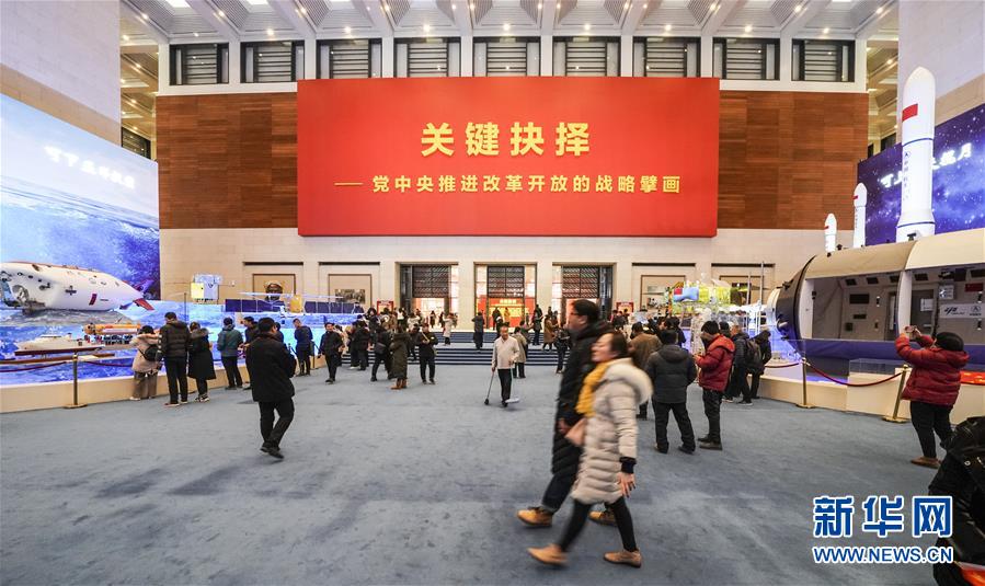 1月3日,观众在“伟大的变革——庆祝改革开放40周年大型展览”上参观。 新华社记者 殷刚摄
