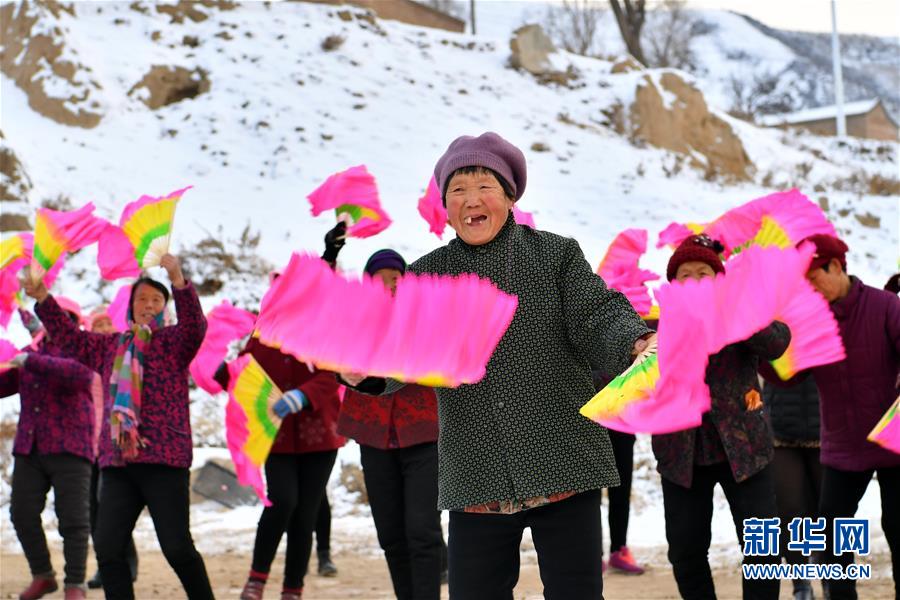 1月2日,在山西省浑源县山阴山村,村民在练习浑源县贫困山区合唱团新教的秧歌。 新华社记者 曹阳 摄
