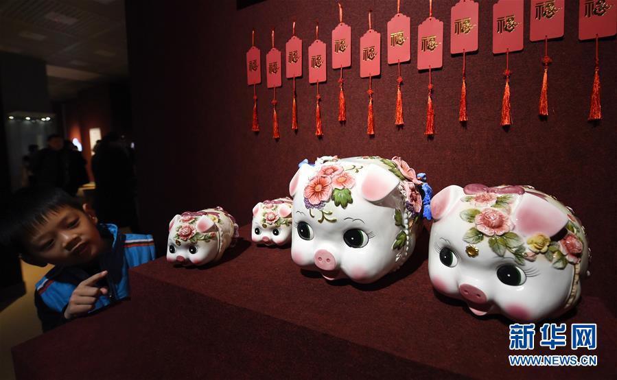 当日,南京博物院为迎接农历猪年新春举办的“富贵猪——南京博物院藏猪文物展”开幕。展览展出历代各类猪题材文物80多件(套),包括陶塑、瓷器、玉器、砖雕、书画、皮影、年画、剪纸、玩具、饰品等,向观众介绍与猪有关的古代农耕文明、传统猪生肖文化与习俗。