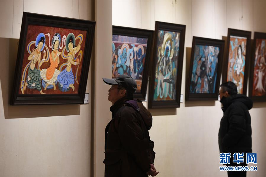 1月6日,在甘肃省艺术馆,观众欣赏俄罗斯画家画敦煌系列油画作品。新华社记者 范培珅 摄