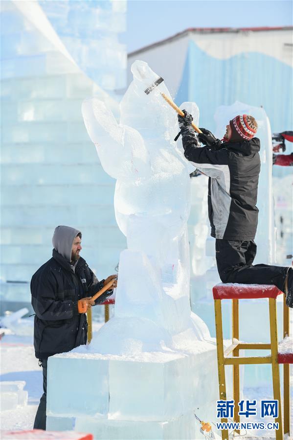 哈尔滨国际冰雕比赛:初露芳容
