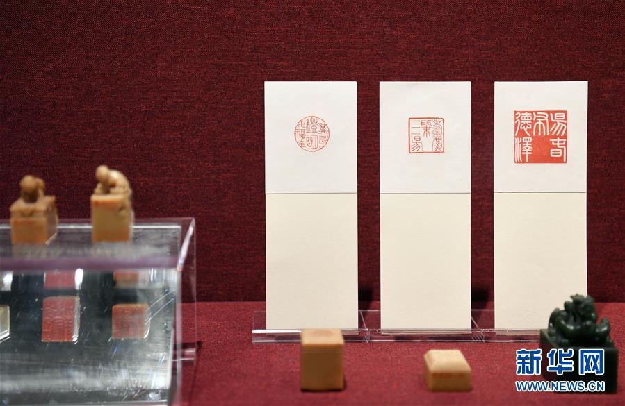 这是展出的贺岁吉语组印(1月7日摄)。新华社记者 金良快 摄