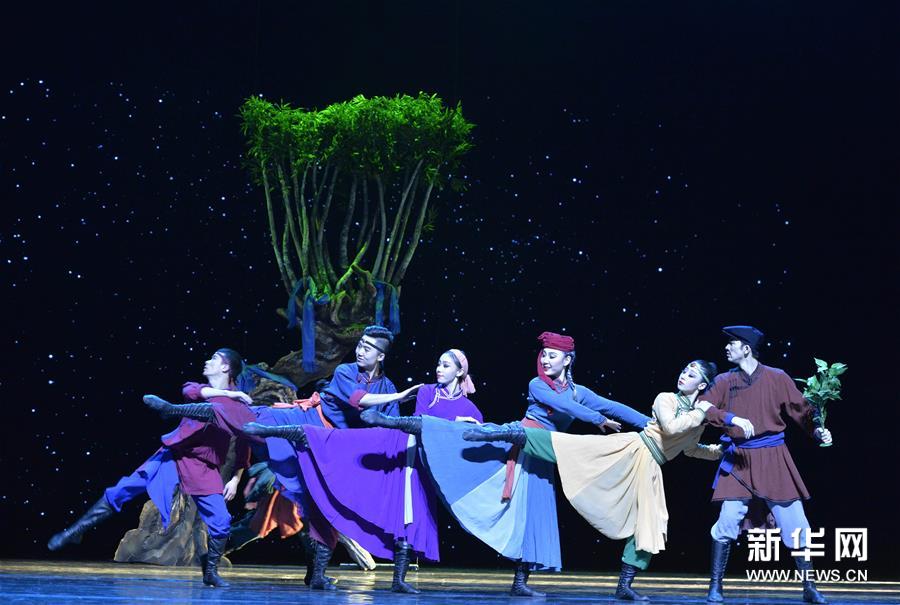 1月6日,演员在2019内蒙古新年舞蹈晚会上表演群舞《门前那棵树》。新华社发(王正 摄)