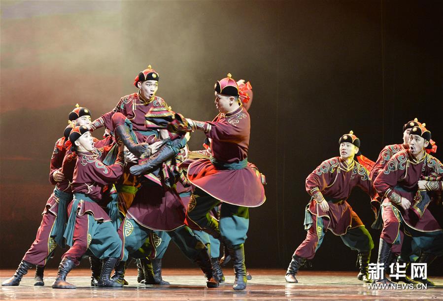 1月6日,演员在2019内蒙古新年舞蹈晚会上表演群舞《黑缎子坎肩》。新华社发(王正 摄)