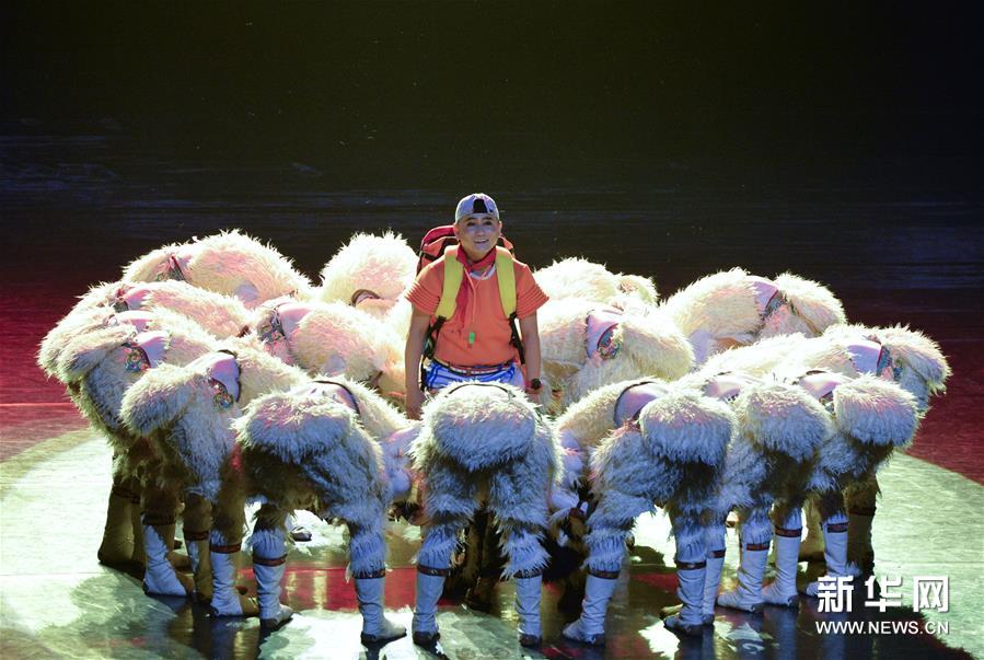 1月6日,演员在2019内蒙古新年舞蹈晚会上表演群舞《小巴特与喜羊羊》。新华社发(王正 摄)