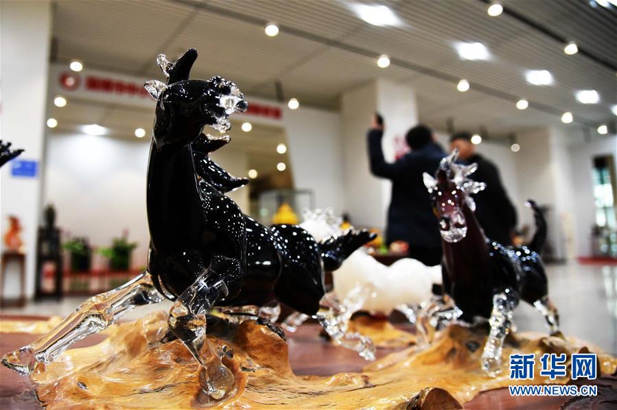 在淄博陶琉国艺馆内展出的用琉璃制作技艺制作的骏马奔腾工艺品(1月8日摄)。 山东省淄博市是陶瓷和琉璃主产区之一。现在,传统陶瓷和琉璃的制作技艺通过创新有了新的发展,创新技艺制作下的陶瓷和琉璃不仅具备人性化的使用功能,还极具观赏性。 新华社记者 王凯 摄
