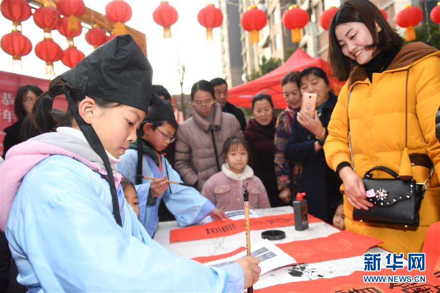 当日,安徽合肥市万年埠街道开展送春联进社区活动,书法爱好者义务为居民写春联,将祝福送到居民身边。