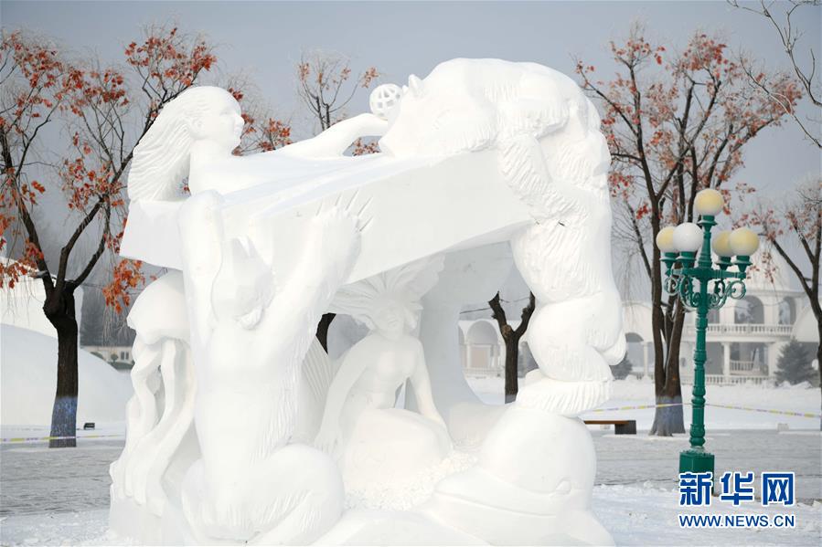 这是获纪念奖的中国零感冰雪雕塑队作品《生存》(1月13日摄)。 新华社记者 王建威 摄