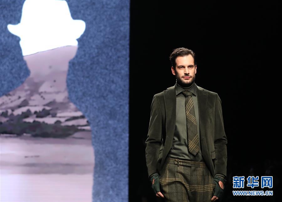 1月13日,在意大利米兰,模特在米兰男装周上展示DAKS品牌时装。 当日,DAKS品牌发布2019秋冬时装新品。 新华社记者 程婷婷 摄