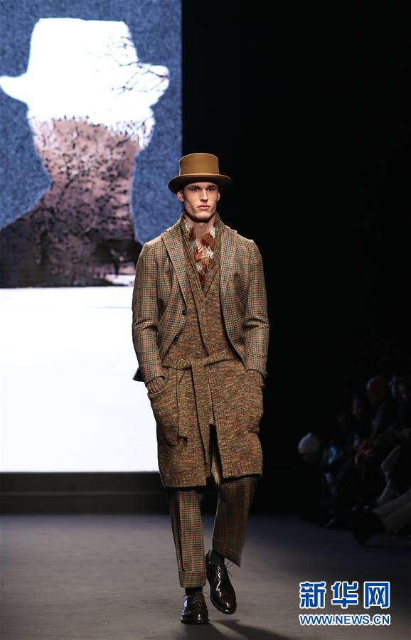 1月13日,在意大利米兰,模特在米兰男装周上展示DAKS品牌时装。 当日,DAKS品牌发布2019秋冬时装新品。 新华社记者 程婷婷 摄