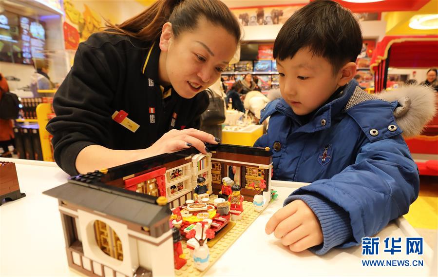 当日,上海南京东路商业街一家积木专营店内,一组以中国传统春节为主题的积木吸引众多顾客目光。系列积木加入年夜饭和舞龙等传统春节元素,为即将到来的新春佳节增趣添彩。
