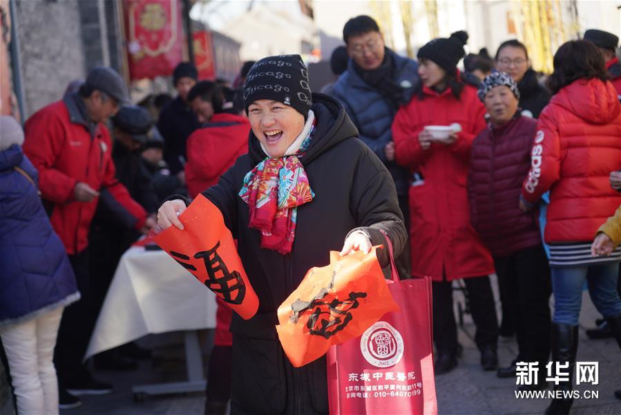 1月13日,北京前门街道草厂社区居民参加“草厂一家亲·欢乐喜迎春”邻里节活动。 当日是腊八,北京前门街道草厂社区的老街坊、新邻居来到改造提升后的社区胡同,大家品美食、唠家常、看节目、做游戏,其乐融融。 新华社发