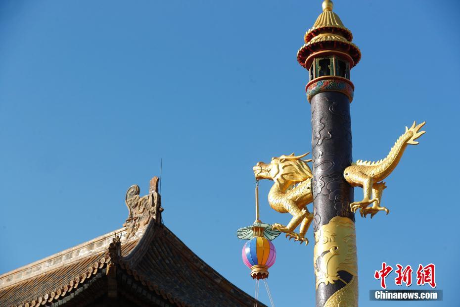 1月21日,北京故宫博物院在乾清宫前丹陛上下树立起“天灯”和“万寿灯”各一对,作为“贺岁迎祥——紫禁城里过大年”展览的实景体验部分正式向观众开放。清代宫廷沿明代旧制,元旦(即今日春节)前后要在乾清宫丹陛上下各立一对天灯和万寿灯,乾隆五十四年开始在皇极殿各增立一对。按《国朝宫史》记载,每年十二月二十四日安设天灯万寿灯。天灯至次年二月初三撤出,万寿灯至正月十八日撤出。立天灯、万寿灯是清代早中期过年最盛大的活动之一。图为天灯。中新社记者 杜洋 摄