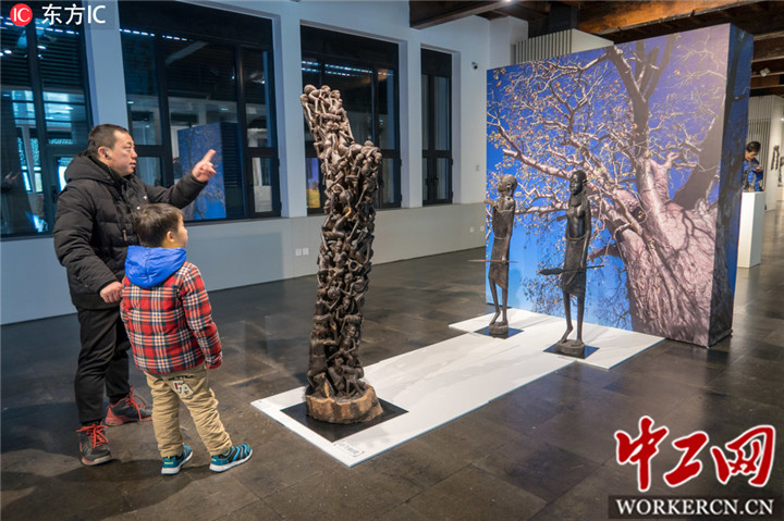 2019年1月17日,上海观众在同济大学博物馆内参观“遇见非洲-坦桑尼亚乌木雕刻艺术-同济大学特展”。本次参展由同济大学博物馆和上海华侨事业发展基金会主办,展览从12月份持续至19年1月份。