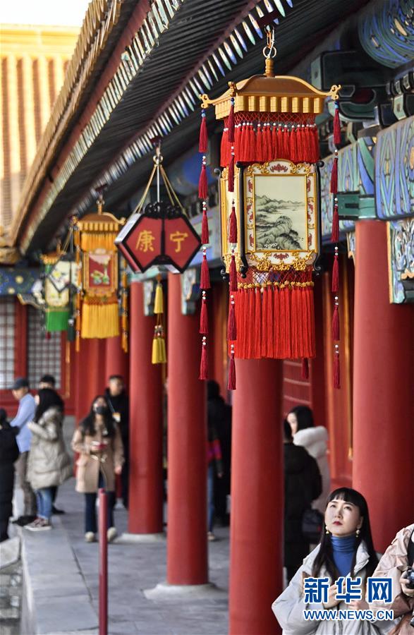 1月25日,游人在观赏故宫内悬挂的各式宫灯。 新华社记者 李欣摄