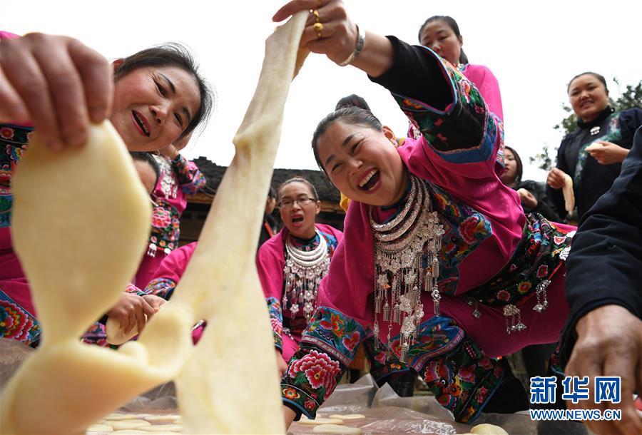 1月26日,在湖南省花垣县边城镇磨老村,苗族同胞在打糍粑。 当日,湖南省湘西土家族苗族自治州花垣县边城镇磨老村迎来传统苗年,众多苗族同胞欢聚一堂,进行打苗鼓、打糍粑等传统活动,欢欢喜喜过苗年。 新华社发(龙恩泽 摄)
