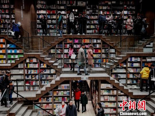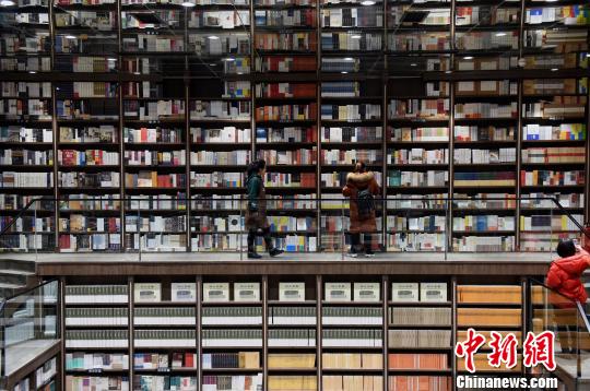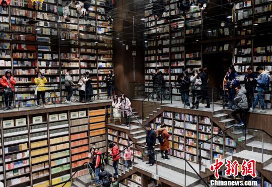 1月26日,重庆一商场内现巨型书架,吸引民众前往一探究竟。记者在现场看到,该书架从底部连通到天花板顶端,巨大的空间布局整齐摆放着各类书籍,显得格外壮观,为前来看书、买书的市民提供了更多的选择。