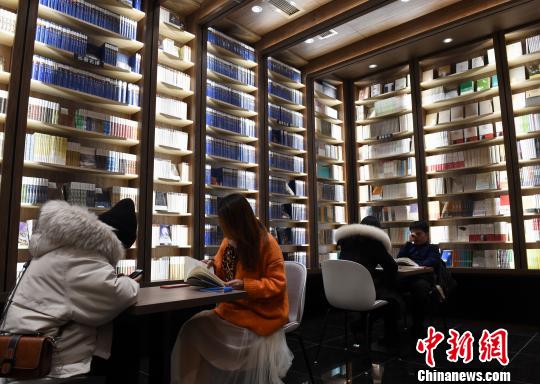 图为市民在巨型书架一角看书学习。 周毅 摄