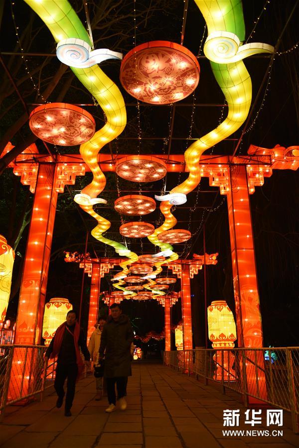 1月27日,部分受邀市民代表在开灯仪式上欣赏花灯。新华社记者 王凯 摄