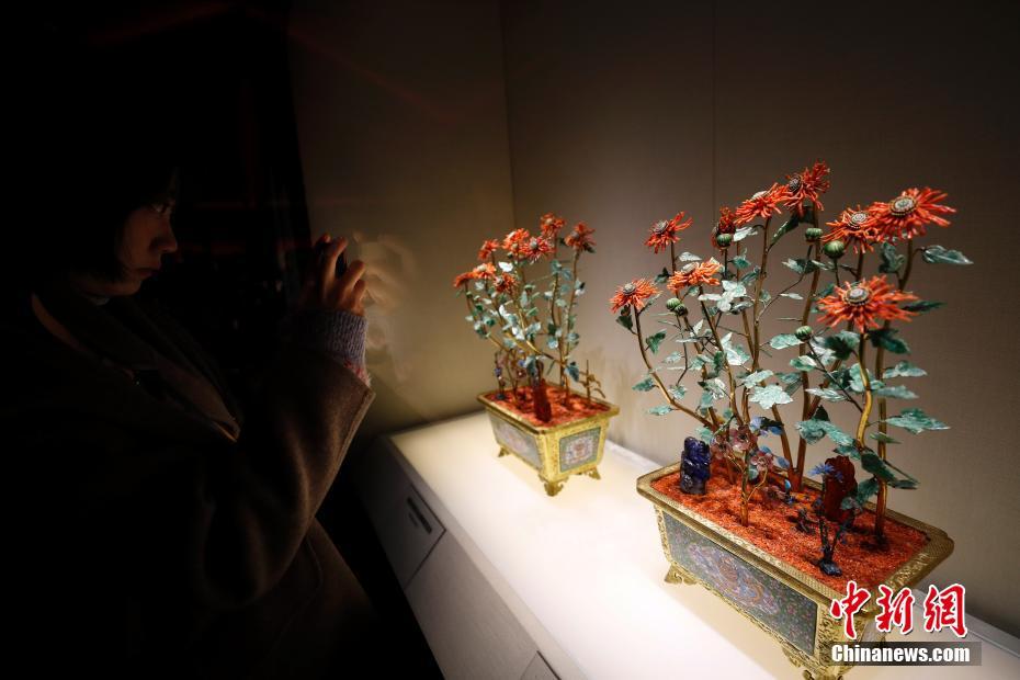 1月28日,北京故宫博物院珍宝馆二期改陈项目完成,此次改陈包括位于皇极殿东、西两侧的庑房,共四个展厅,分别以珠宝、金银、玉石、盆景类文物为主题,计划于今年春节前正式对公众开放。盆景类文物极具宫廷特色,此前从未做过集中的长期展示,本次改陈填补了这一展览空白。中新社记者 杜洋 摄