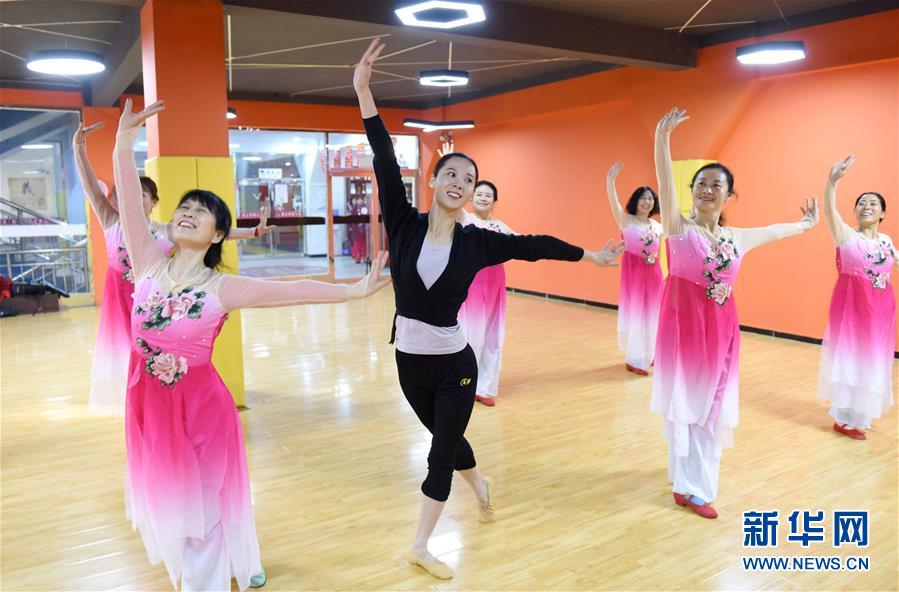 1月30日,南和县文化馆舞蹈老师(中)与学员一起排练舞蹈。 近年来,为满足基层群众的文化需求,河北省南和县文化馆开展“文艺惠民大舞台”系列活动,开设舞蹈、声乐、戏曲等免费文艺培训项目,群众可根据个人喜好“点单”选择课程。截至目前,南和县已有2000余人参加了公益文艺惠民培训。 新华社记者 朱旭东 摄