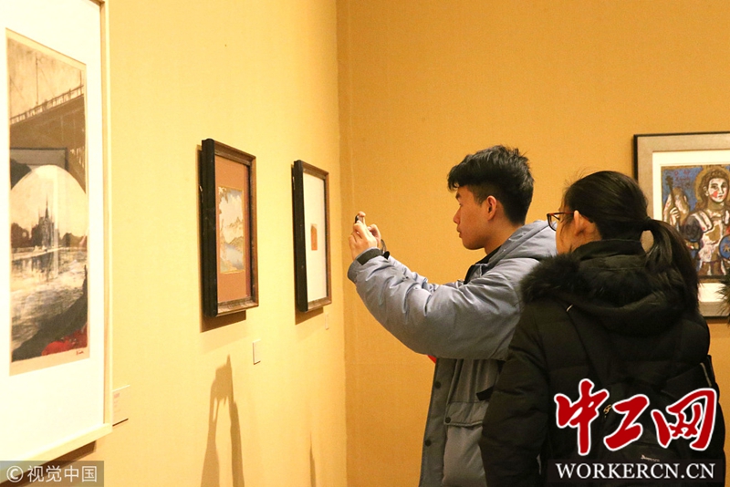 2019年1月31日,北京,观众在中国美术馆观看由中国美术馆和黑龙江省美术馆联合主办的“文明互鉴——版画语境中的世界图像”展览。