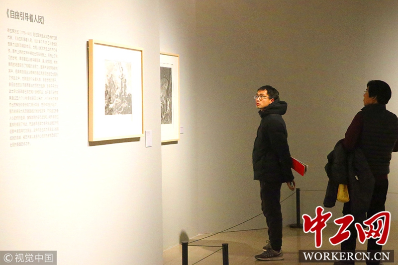 2019年1月31日,北京,观众在中国美术馆观看由中国美术馆和黑龙江省美术馆联合主办的“文明互鉴——版画语境中的世界图像”展览。