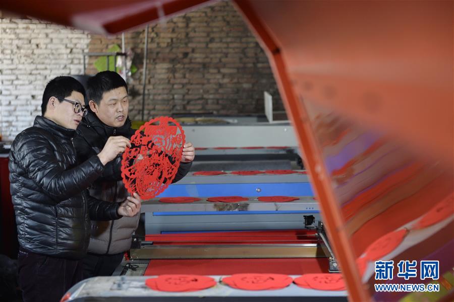 2月1日,河北省南宫市一家毛毡制品有限公司工作人员在查看毛毡饰品质量。 春节临近,在素有“中国毛毡之乡”美誉的河北省南宫市,灯笼、“福”字、窗花、春联等毛毡饰品订单纷至沓来,毛毡产业呈现一片繁忙景象。近年来,南宫市积极将文化创意融入到毛毡饰品制作中,毛毡饰品年销售量可达2000万套(件)。 新华社记者 牟宇 摄