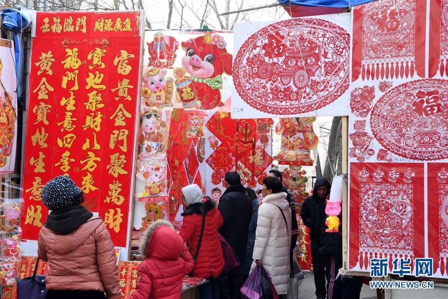 2月1日,市民在天津古文化街选购新年饰品。 春节临近,天津街头张灯结彩,喜迎新春佳节。 新华社记者马平摄