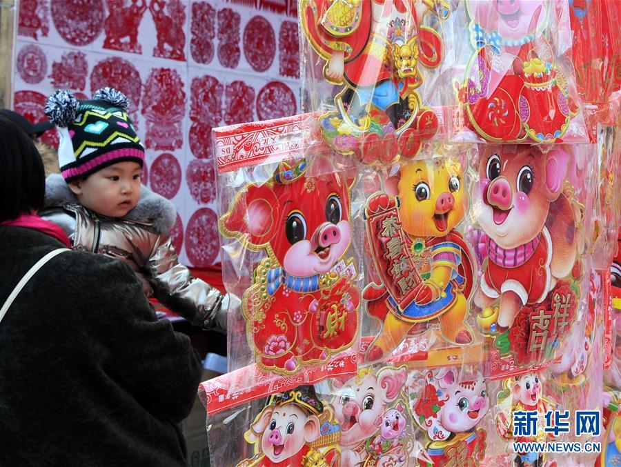 2月1日,市民在天津古文化街选购新年饰品。春节临近,天津街头张灯结彩,喜迎新春佳节。 新华社记者马平摄