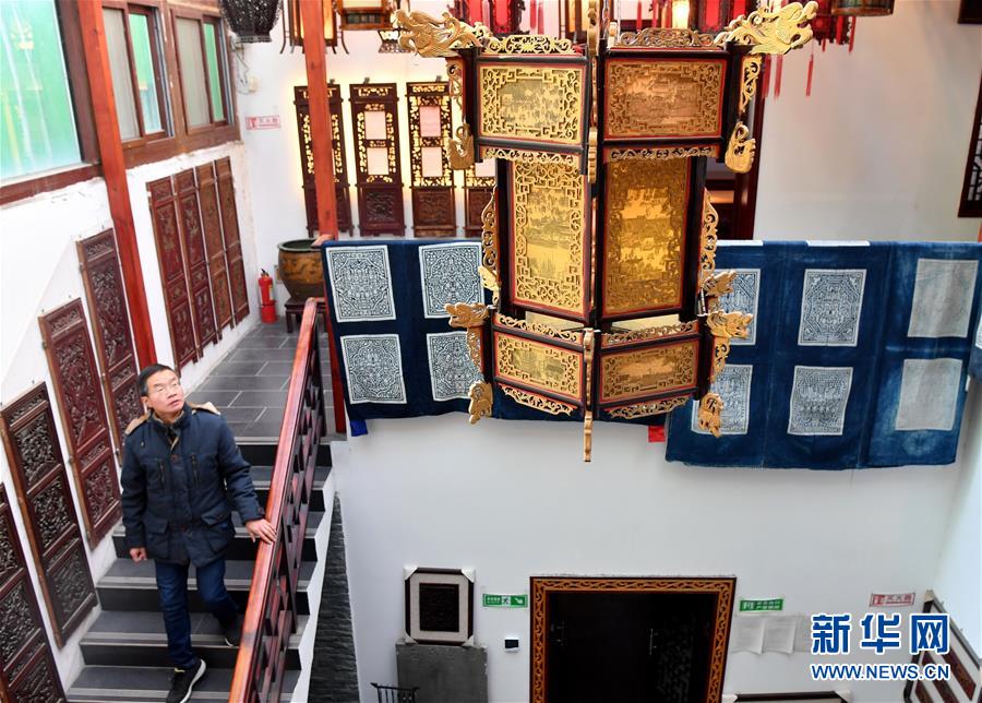 张俊涛走在汴京灯笼张民间艺术博物馆内(1月15日摄)。新华社记者 李嘉南 摄