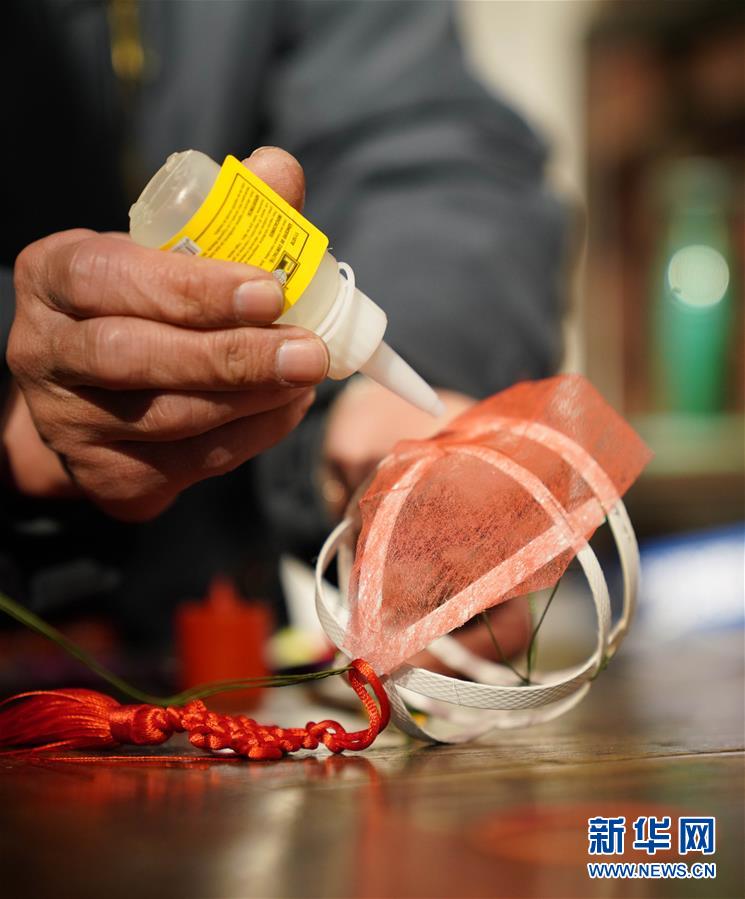 张俊涛在汴京灯笼张民间艺术博物馆制作灯笼(1月15日摄)。新华社记者 卢烨 摄