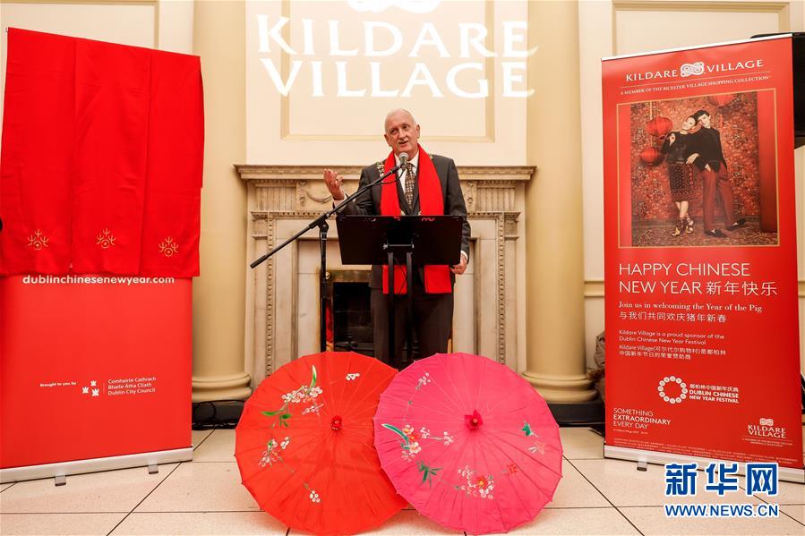 2月1日,在爱尔兰首都都柏林市美术馆,都柏林市长尼亚尔·林在中国新年庆典开幕式暨音乐会上致辞。爱尔兰都柏林中国新年庆典开幕式暨音乐会2月1日晚在都柏林市美术馆举行,标志着为期17天的中国新年庆典活动正式拉开帷幕。 新华社发