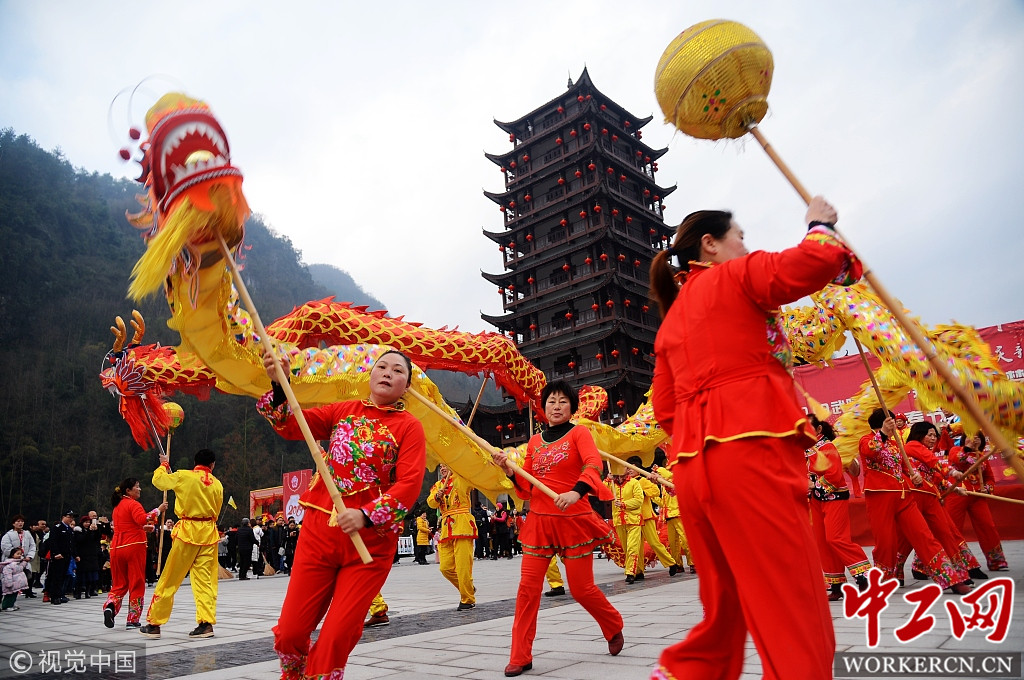 2019年2月5日,湖南张家界武陵源风景名胜区举行“我们的中国梦——文化进景区”系列春节活动。现场图。图片作者:邓道理/视觉中国