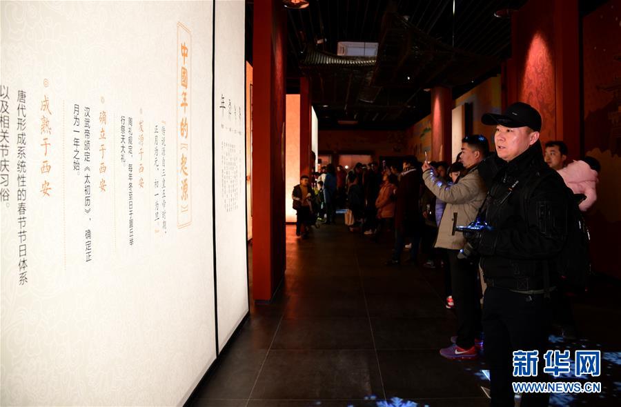 2月7日,在陕西西安博物院,游客在年文化展上了解中国年的起源。