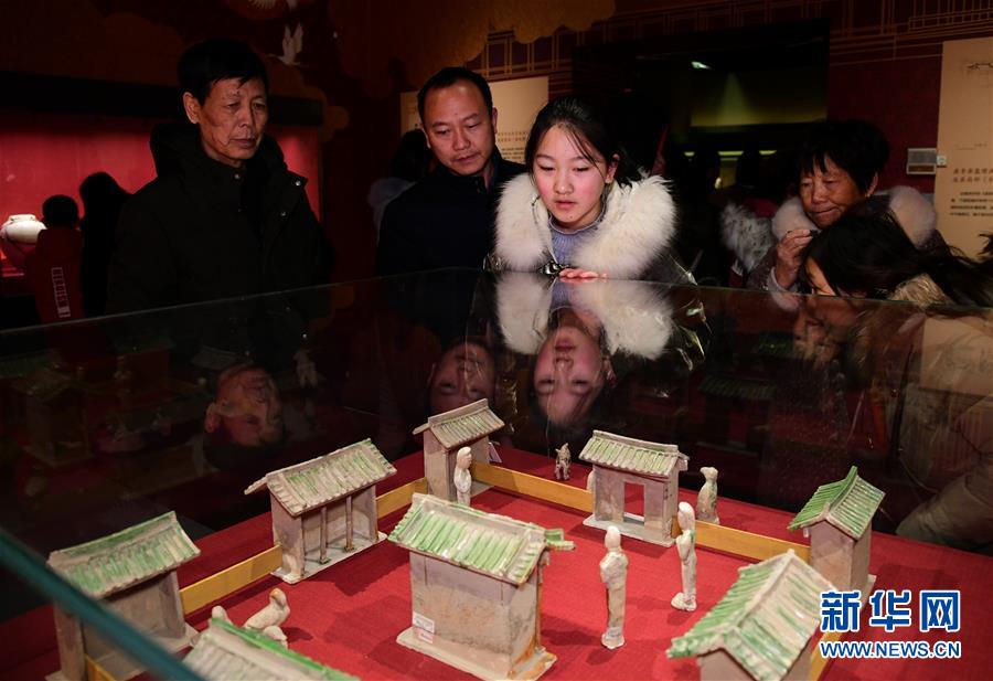 2月7日,在陕西西安博物院,游客在年文化展上参观。 新华社记者 李一博 摄