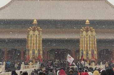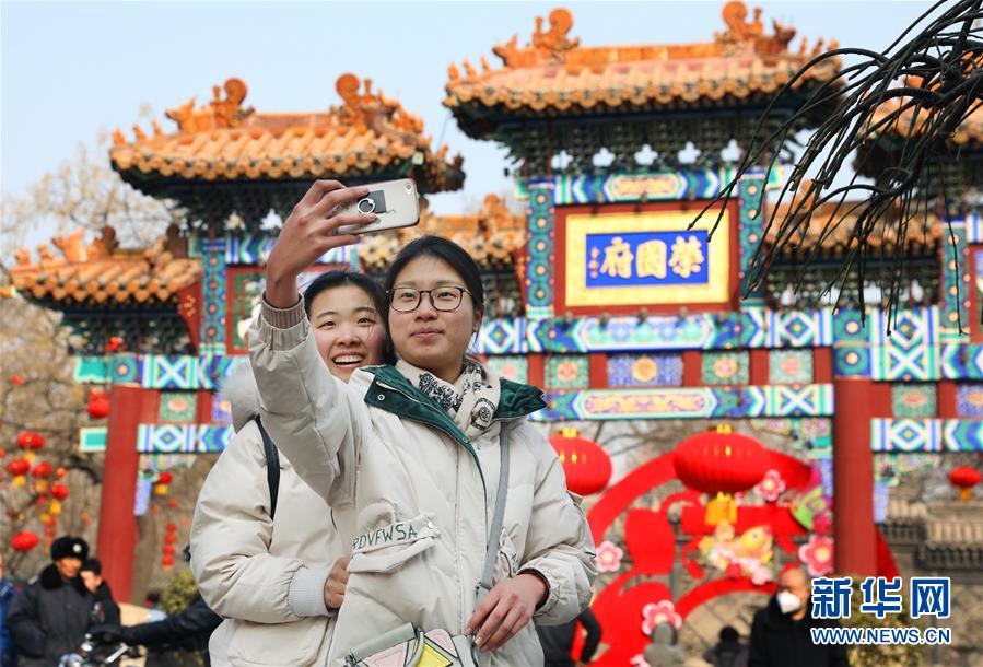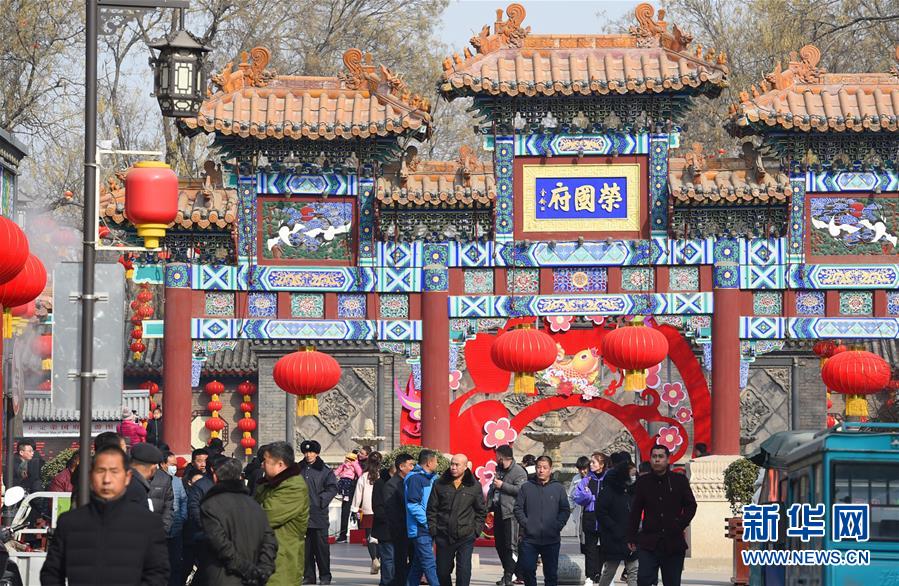 2月11日,游客在石家庄市正定古城游玩。